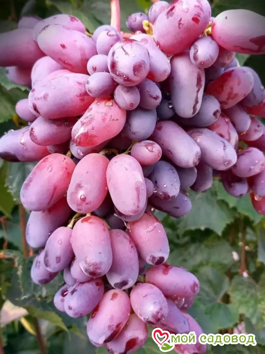 Виноград Байконур столовый — Сильнорослый виноград с мощными побегами дает высокую урожайность. Окрас ягоды темно-фиолетовая с плотной кожицей. Форма удлиненная. Мякоть плотная, с гармоничным вкусом. Хрустящая при раскусывании.  Спокойно переносит морозы до -25°С. Проявляет устойчивость к грибковым болезням и повреждению осами. Магазин Мой Садовод, рекомендации по уходу Уход за виноградом сводится к регулярным поливам в сухую погоду, подкормкам и формированию куста. Для подкормки используют минеральные и органические удобрения (перепревший навоз, компост). Ранней весной кусты виноград поливают полным минеральным удобрением, растворенным в воде, перед цветением такую подкормку повторяют. Перед созреванием вносят фосфорно-калийные удобрения, а после сбора урожая проводят подкормку калием для повышения зимостойкости растений. Кроме того для лучшего вызревания лозы рекомендуется удаление пасынков и прищипывание верхушек в начале сентября. Формирование куста Винограда. Для формирования виноградных кустов необходимо установить надежную опору. Самая простая представляет собой два столба с несколькими рядами проволоки между ними. По мере роста побеги подвязывают к проволоке, задавая им нужное направление. Формирование куста винограда начинают с первого года, оставляя не более двух здоровых побегов у основания, остальные выламывают. На второй год на кусте оставляют по три почки на каждом побеге, на третий год на каждом плече оставляют 2-3 сильных побега, остальные удаляют. Пожалуйста, помните, что транспортировка и пересадка — стресс для растения. Перед высадкой в открытый грунт обработайте корневую систему стимулятором роста. С заботой о растениях, Мой Садовод. В нашем интернет-магазине вы сможете купить Столовый сорт винограда Так же возможно вас заинтересуют Виноград Румба и Виноград Лидия Розовая изабелла
